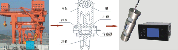 軸銷式傳感器是測量軸承、滑輪等構件的徑向載荷或鋼絲繩張力的專用傳感器,它可以代替平衡滑輪、定滑輪的軸或其他形式的銷軸安裝在結構中作徑向力測量。根據(jù)不同用途,方便地安裝在兩金屬結構聯(lián)接的掛鉤處、索具卸扣、動滑輪(組)、定滑輪(組)、楔形接頭、鋼索索節(jié)、船用索具、開式螺旋扣、拉桿頭部和叉形接頭,聯(lián)接叉、吊環(huán)、鋼輪的軸孔內,既能起到替代原有軸的功能,又起到稱重測力傳感器的作用,從而使整個稱重測力控制系統(tǒng)的機械部件大大簡化。 (量程:0~100T,超過100t可定制,傳感器量程非實際起吊重量,用戶可根據(jù)實際倍率選擇合適量程)