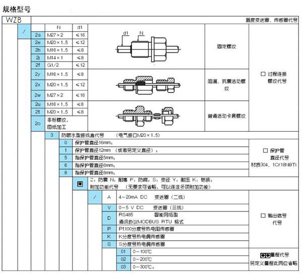 2、長(zhǎng)度表示方式:L=保護(hù)管總長(zhǎng)×插入長(zhǎng)度 (單位:mm,密封面以下為插入長(zhǎng)度)