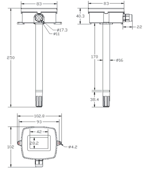 102 x 83 x 250mm |