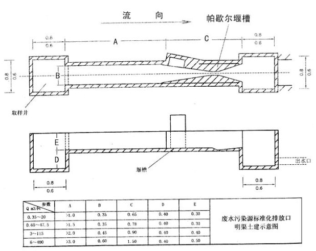 明渠流量計(jì)的土建安裝示意圖、注意事項(xiàng):