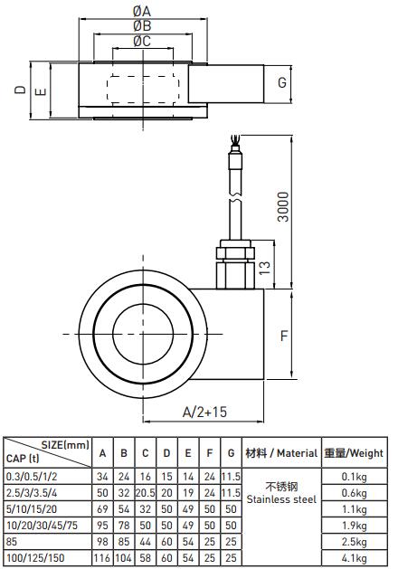 傳感器應安裝在足夠硬的水平磨面上。測力傳感器測量單壓力時由外環(huán)支撐,待測力作用于內(nèi)環(huán)面上,與測力傳感器中軸線垂直。
