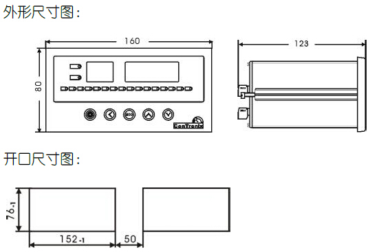¤ 顯示:2位LED通道號顯示,4位測量值顯示,顯示范圍:-1999~9999