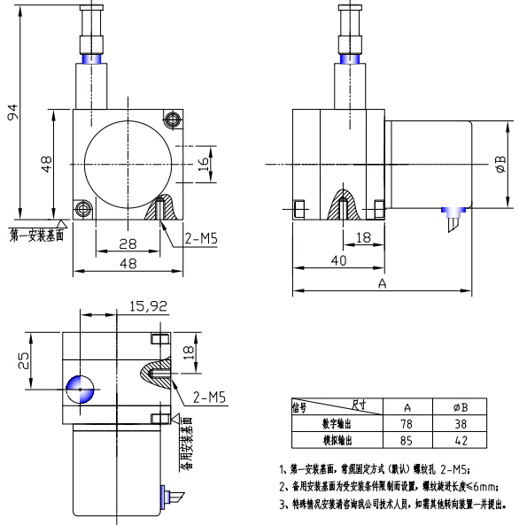 數(shù)字量輸出型可以選擇增量旋轉(zhuǎn)編碼器、絕對(duì)值編碼器等,輸出信號(hào)為方波ABZ信號(hào)或格雷碼信號(hào),行程最大可以做到1000mm,線性精度最大0.05%,分辨力根據(jù)配置不同最大可以達(dá)到0.002mm/p