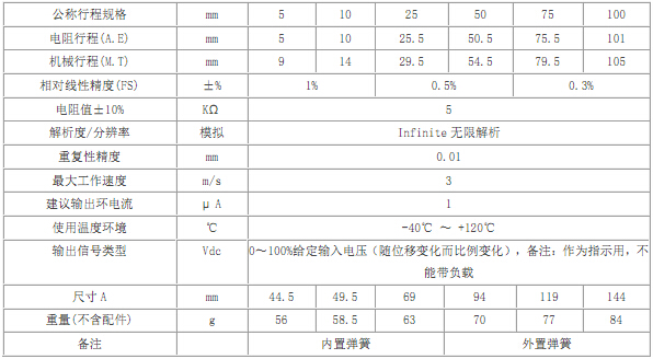 微型自恢復(fù)系列直線位移傳感器,有效行程
