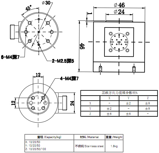¤ 額定載荷:10kg,20kg,50kg,100kg