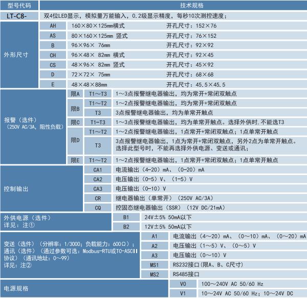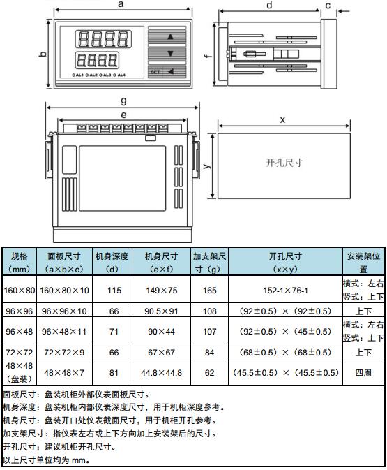 ¤ 外形及面板形式:160×80(橫/豎)、96×48(橫/豎)、96×96各類雙顯示形式