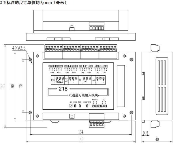 ¤ 10VDC~32VDC供電,功耗小于1.2W